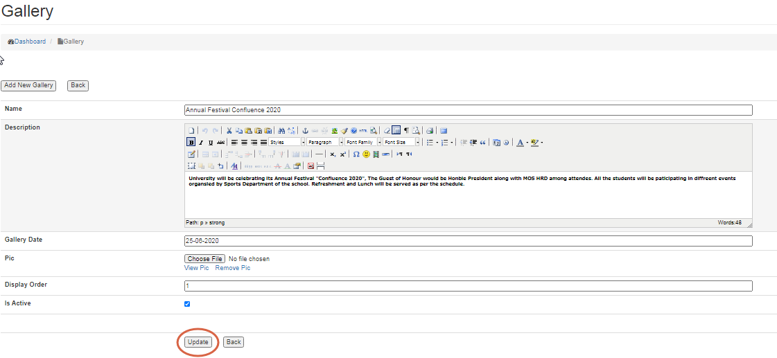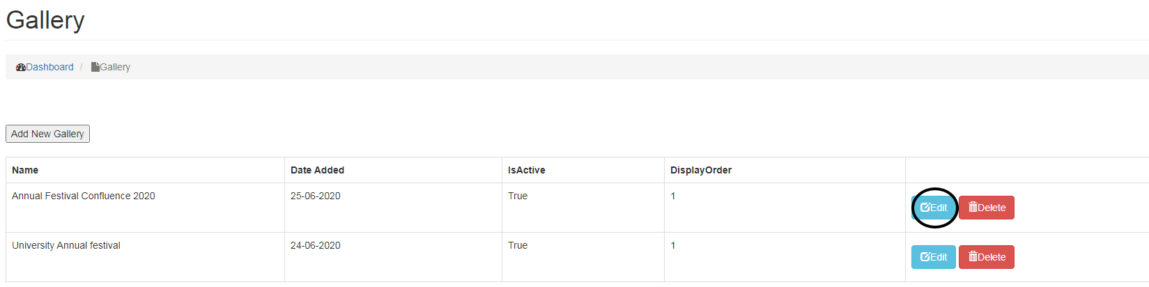 Is Active allows user to select whether the particular Gallery, is to be made Visible or not on the website.