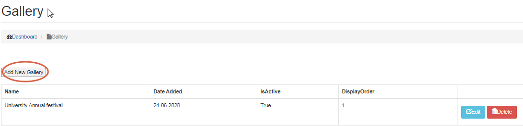 In Gallery section, you will be able to add Gallery by clicking on Add new Gallery button so that you can proceed with other details.